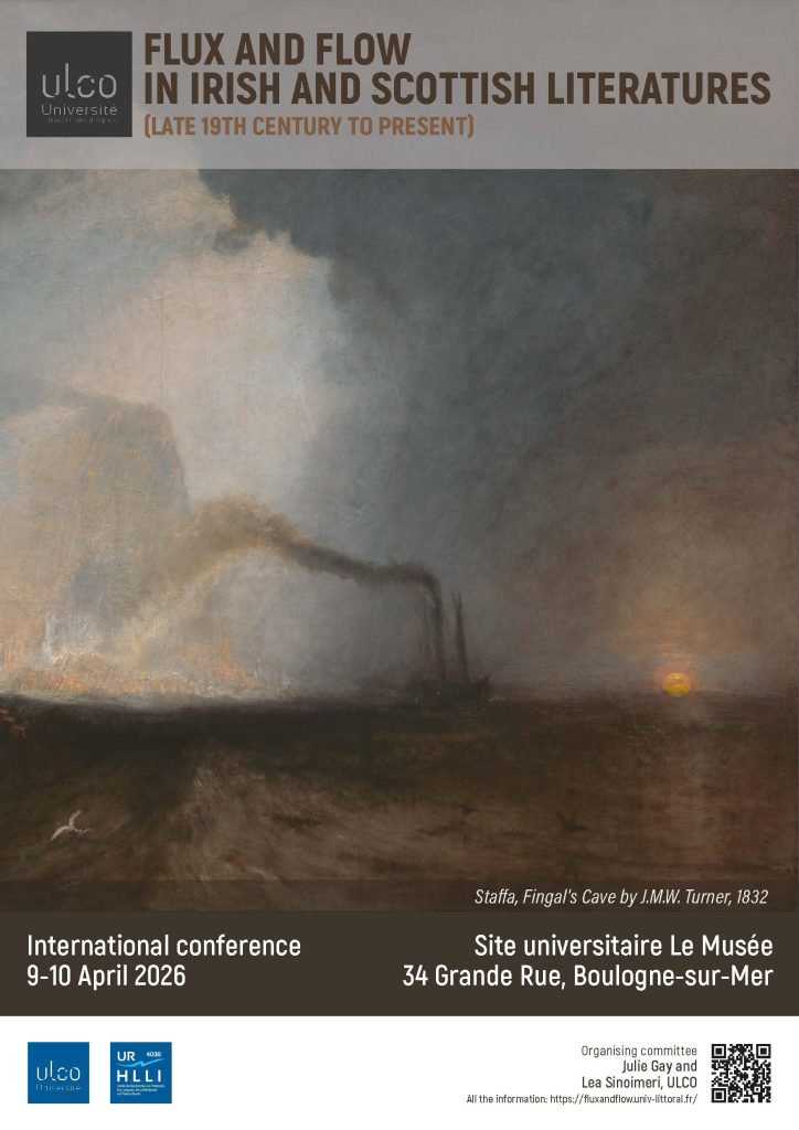 Colloque international « Flux and Flow in Irish and Scottish literatures (late-19th century to present) », organisé par Léa Sinoimeri et Julie Gay, les 9 et 10 avril 2026 à Boulogne-sur-Mer